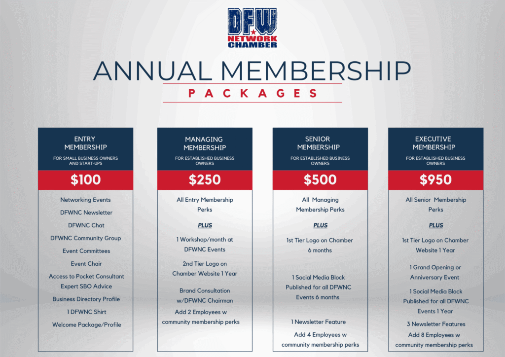 The DFW Network Chamber is a 501(c)(6) non-profit that seeks to make the economic prosperity of the Dallas-Fort Worth Metroplex more inclusive while celebrating culture and diversity. We serve small business owners and professionals across the entire Dallas-Fort Worth Metroplex.